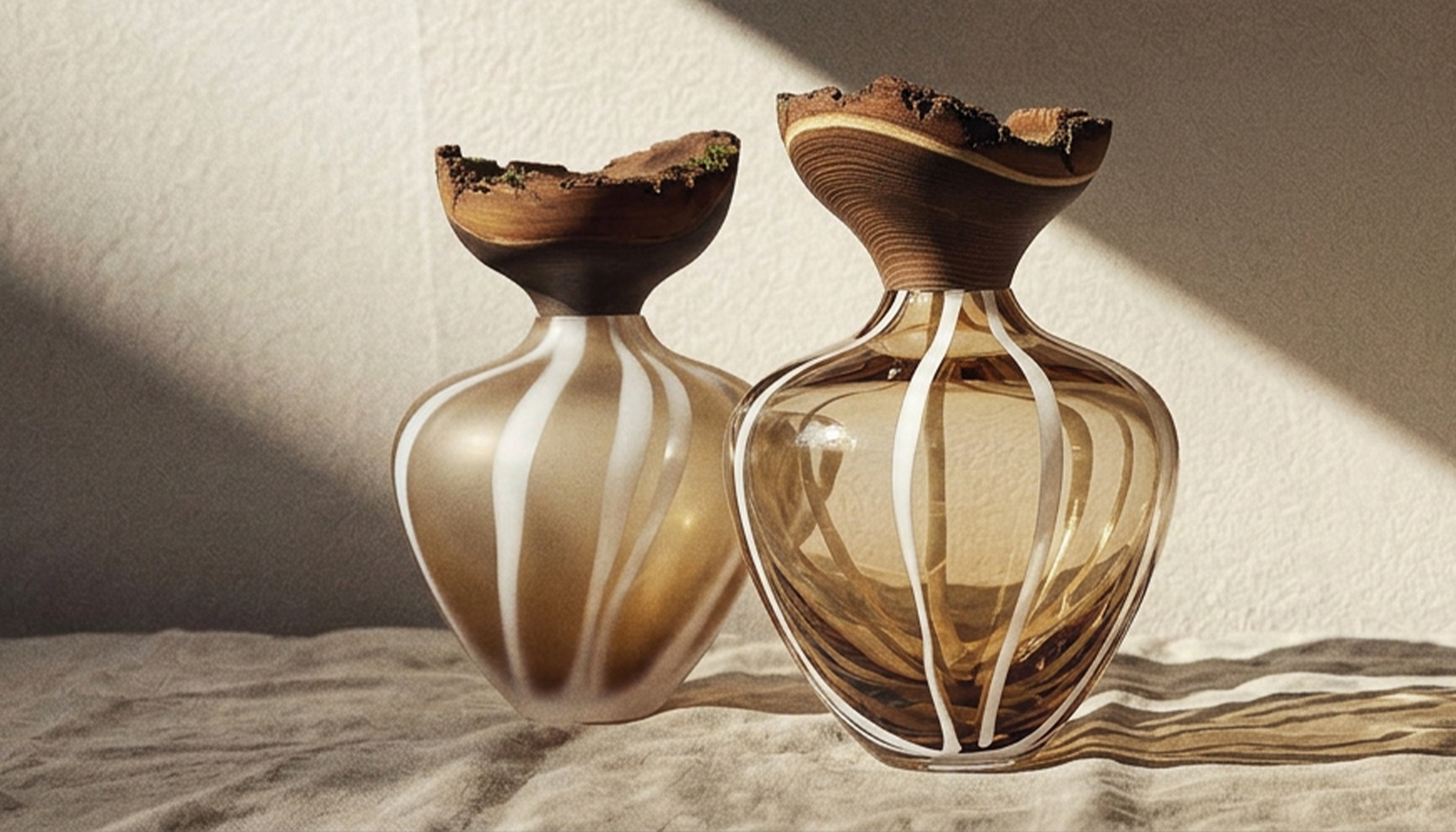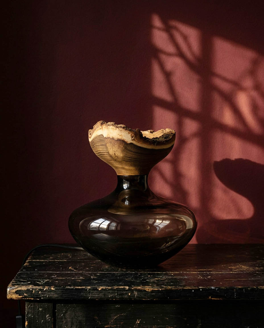 India Large I | Stacking Vessel in Glass, Semi- Precious Metal & Wood