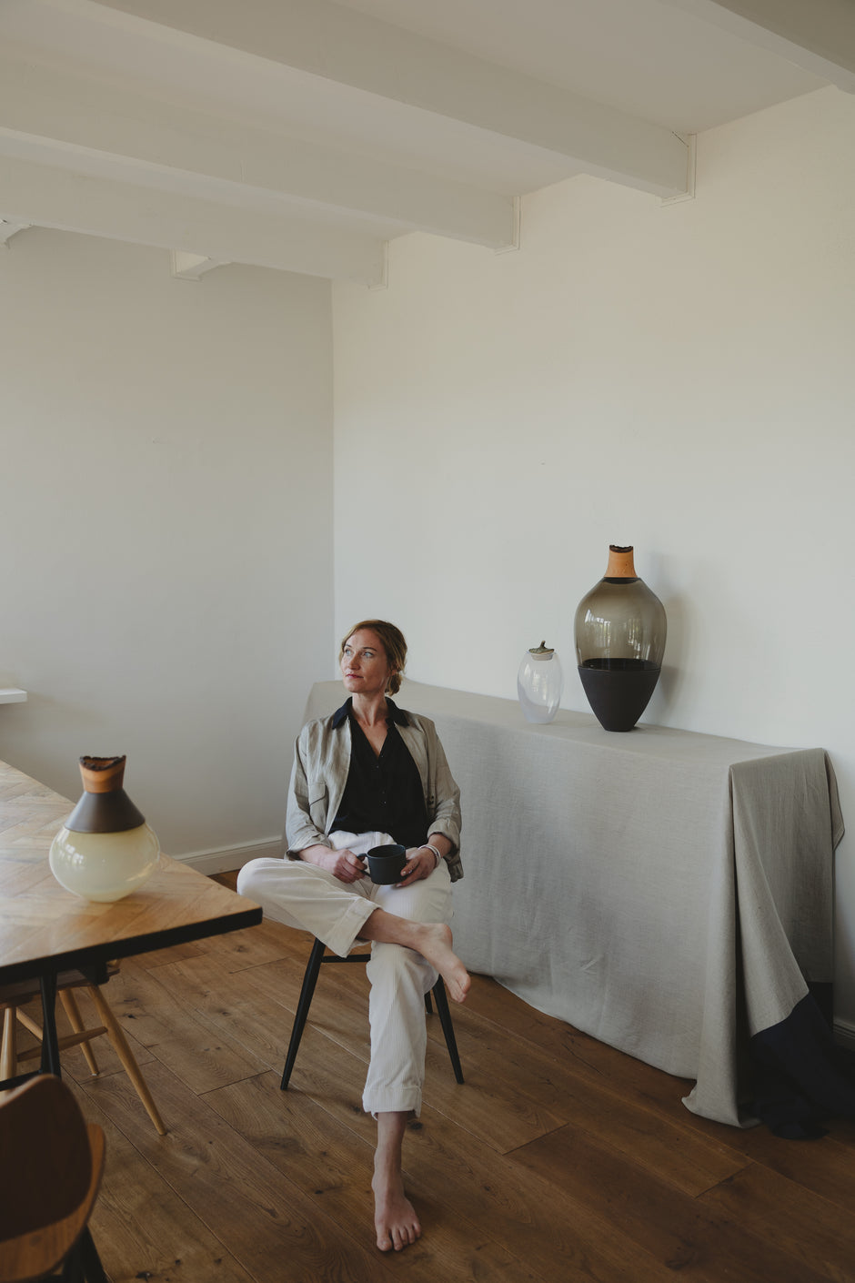 Since 2017, Pia has worked between studios in Northern Germany and Eastern Finland, drawing inspiration from the contrast between industrial and natural landscapes. Her design approach is rooted in sustainability, material integrity, and a deep respect for the handmade.