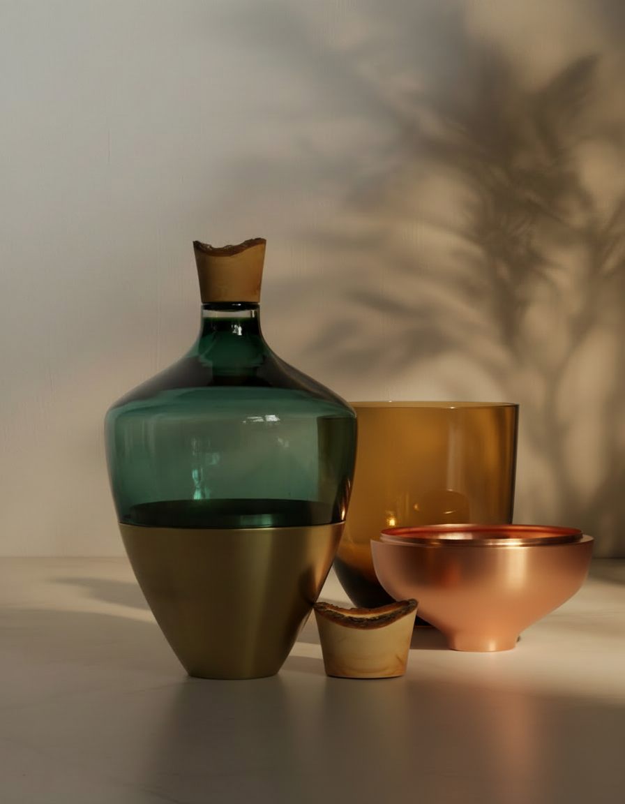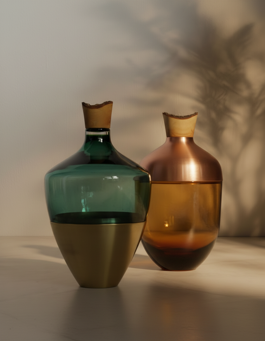 Founded in 2012, Utopia & Utility merges the functional with the fantastical through handcrafted vessels that unite materials like glass, wood, and metal. Each piece tells a story of collaboration, heritage, and sustainable creativity.
