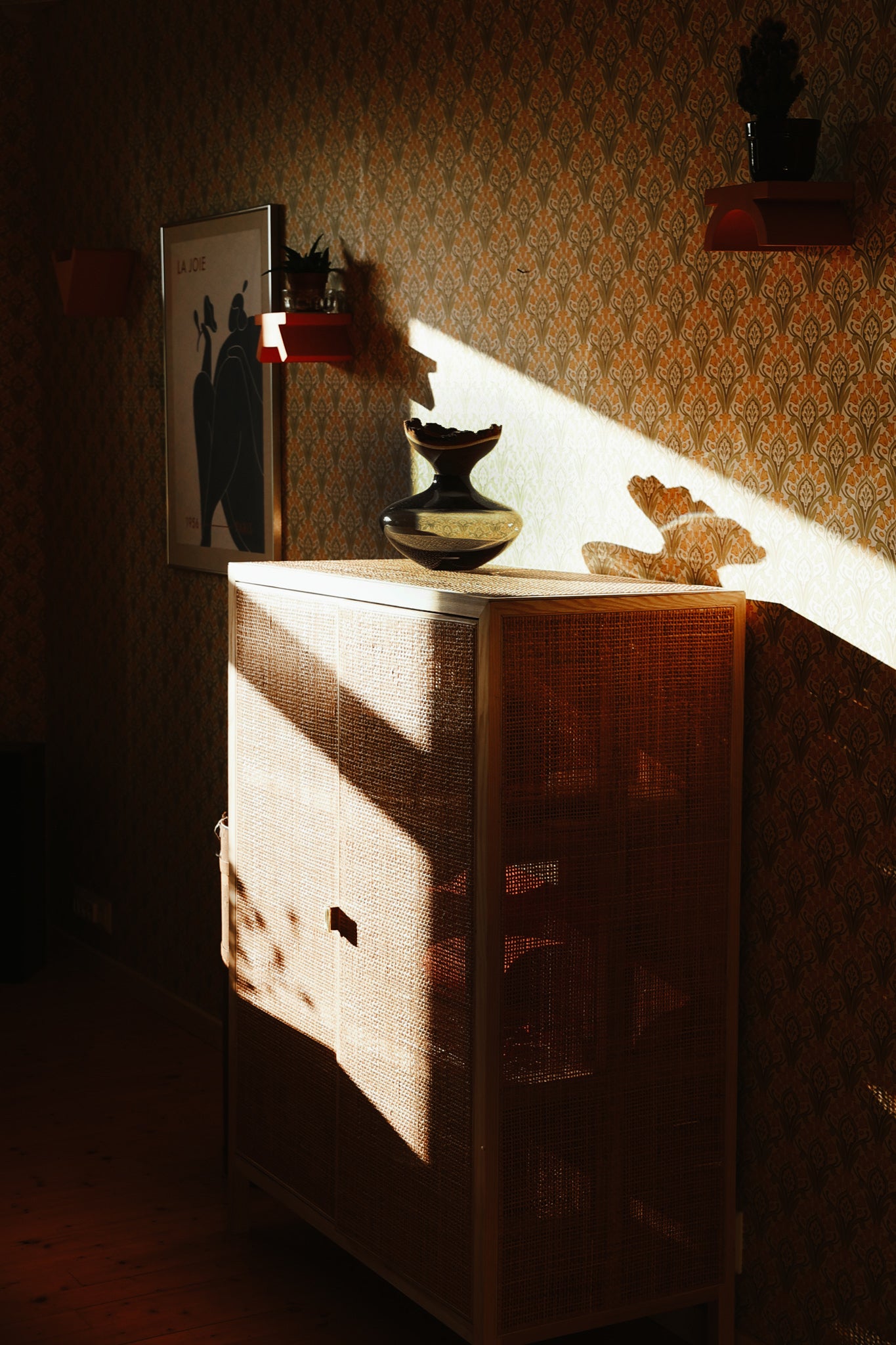Bloom is an elegant and timeless centerpiece, designed to add a sophisticated touch to any table or sideboard. The mouth-blown glass vase, crafted in Czechia, features a beautifully hand-turned wooden top from a small workshop in Germany. The wood is smoked to achieve a rich, dark tone, creating a striking contrast with the glass and adding depth and warmth to the piece.