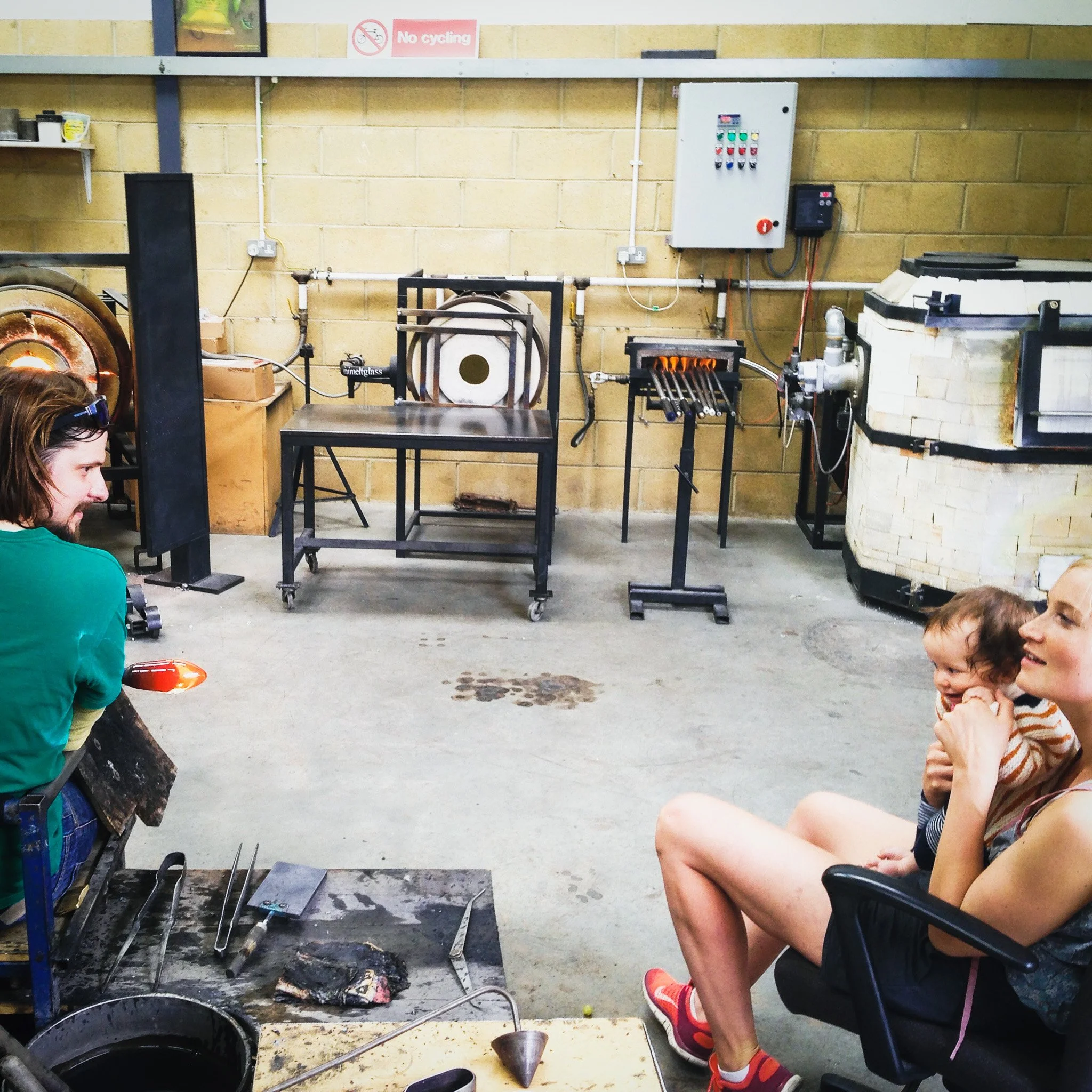 James, the gaffer, and Utopia designer Pia with her daughter Maya in the hotshop